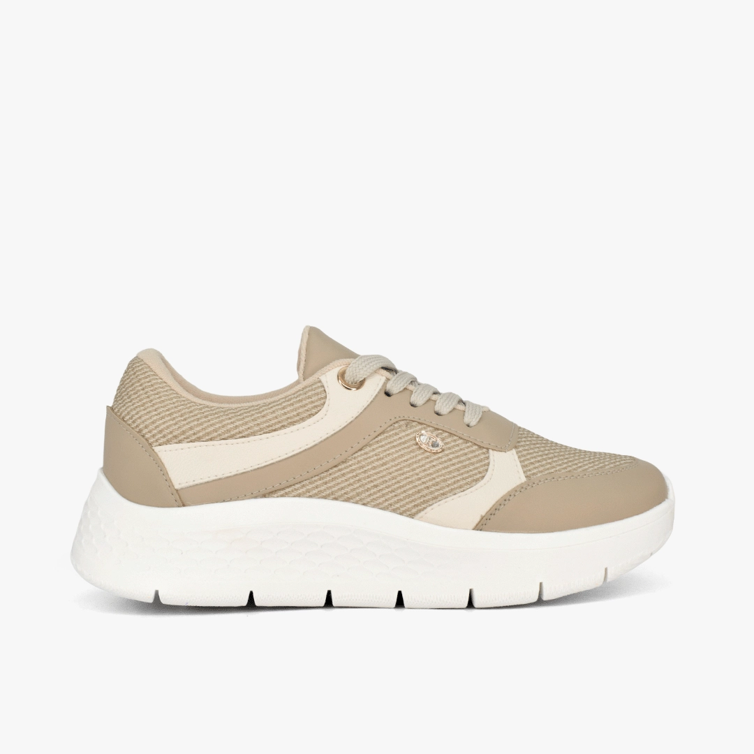 Tono duna que aporta calidez y sofisticación a cualquier outfit. La mezcla de texturas y paneles en contraste crea un look moderno y versátil, mientras la suela clara resalta su estética limpia y actual.