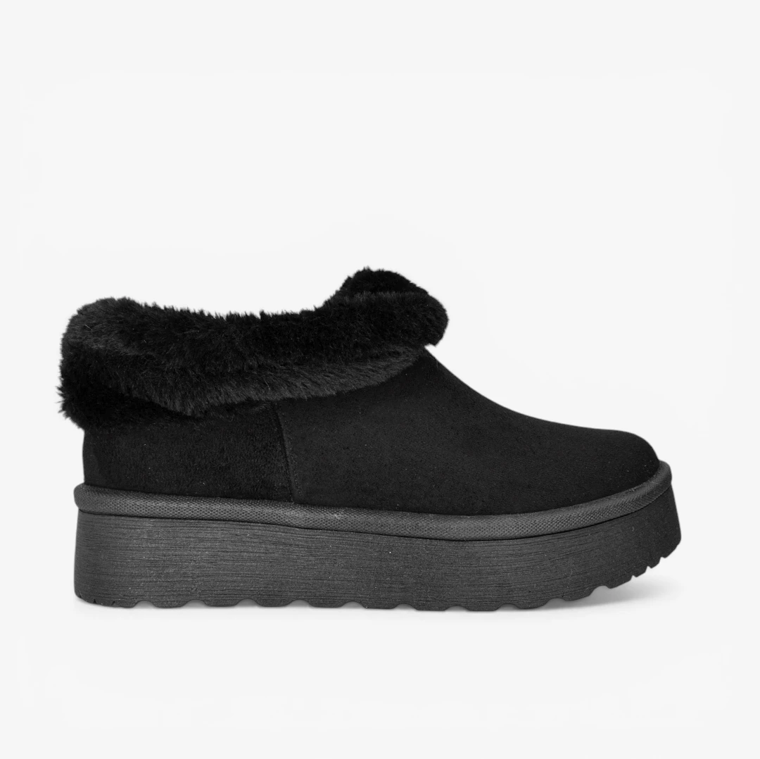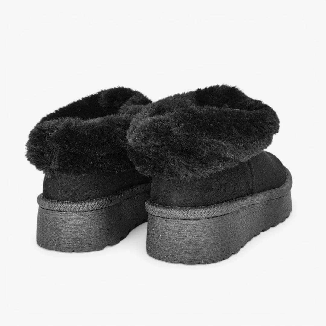 Actitud urbana con un acabado que destaca por su estilo moderno. El detalle de pelo aporta un contraste llamativo, mientras su silueta tipo botín bajo y suela gruesa completan un look versátil y en tendencia.