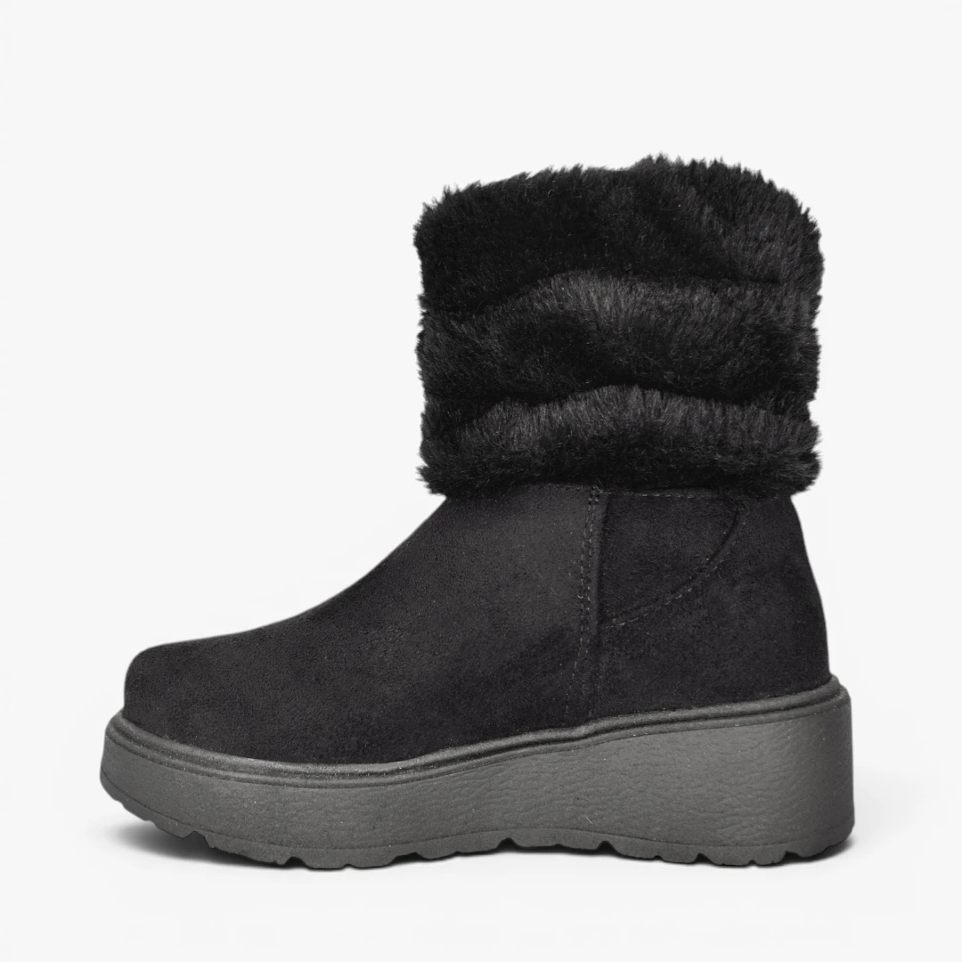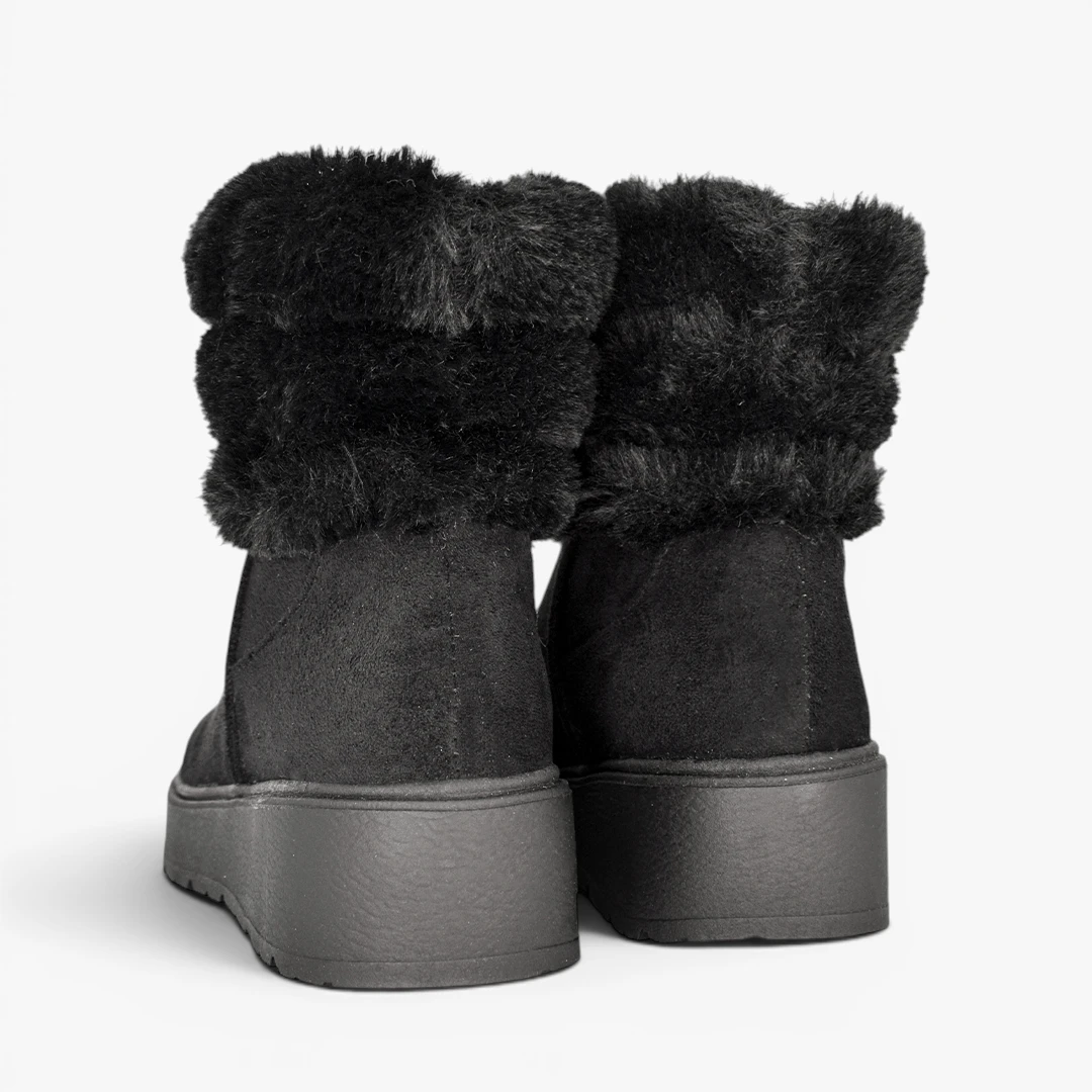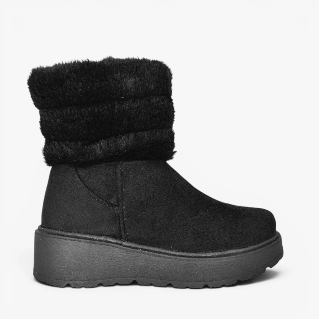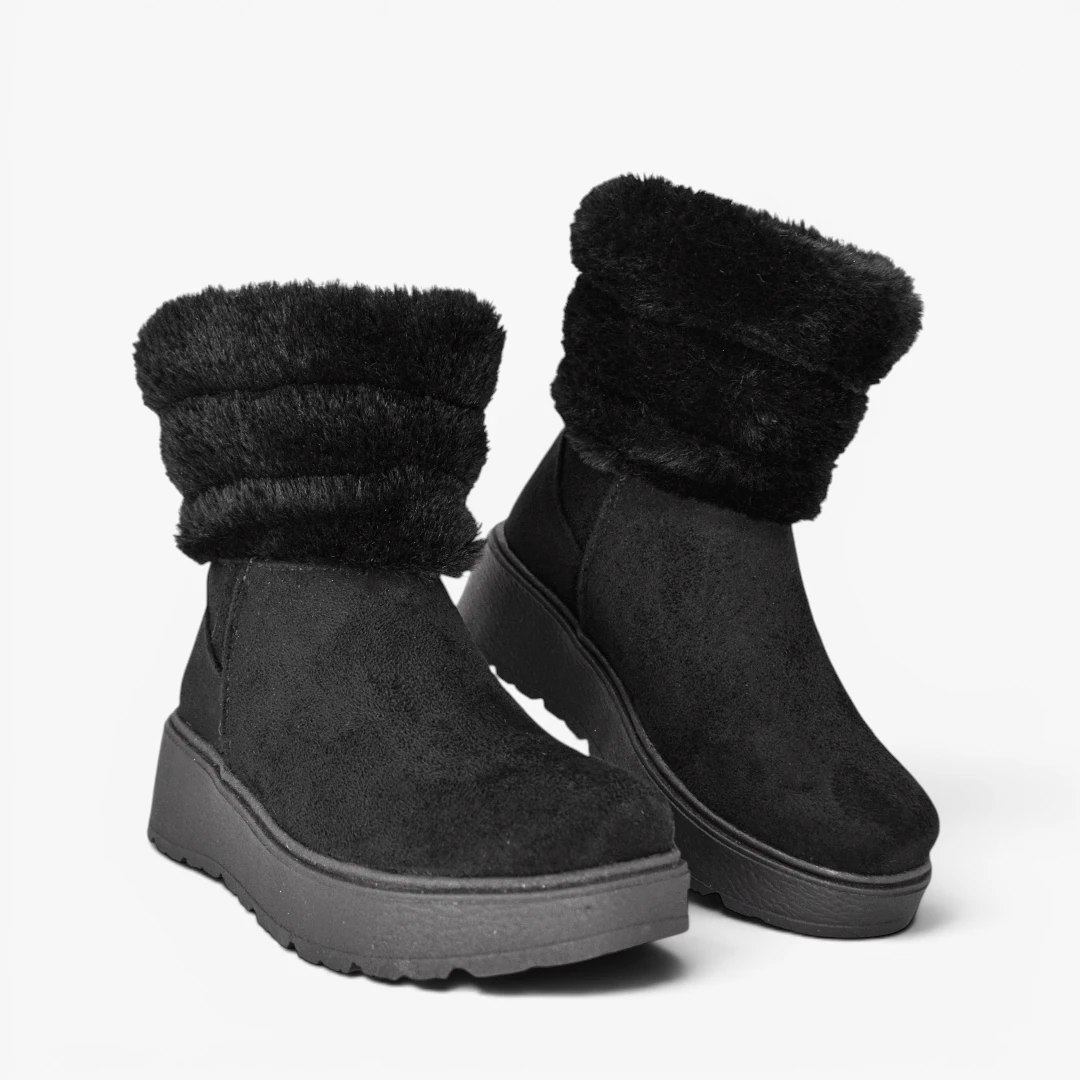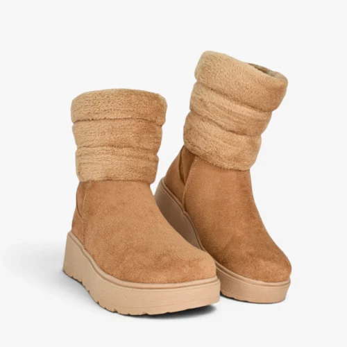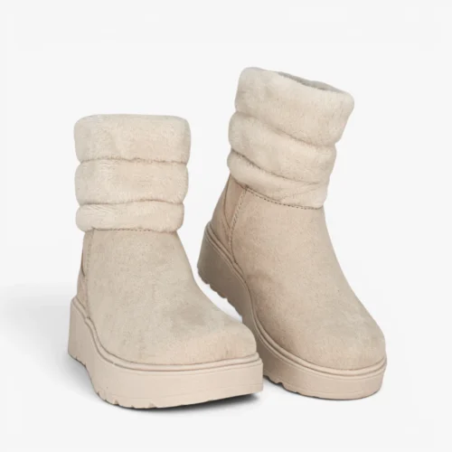 Un básico con actitud que eleva cualquier outfit. El acabado tipo gamuza con cuello en textura suave aporta contraste, mientras la suela gruesa y la cremallera lateral completan un look moderno y en tendencia.