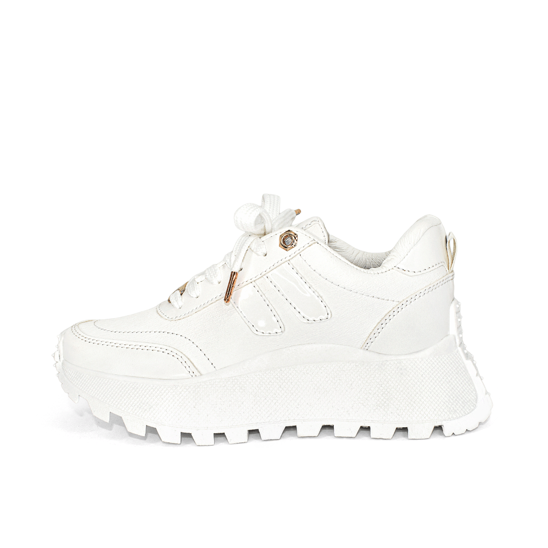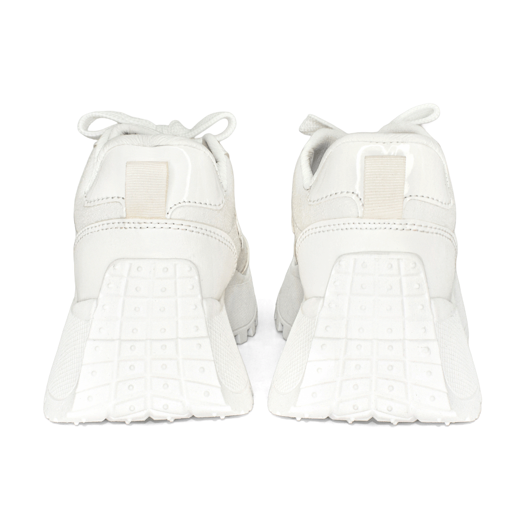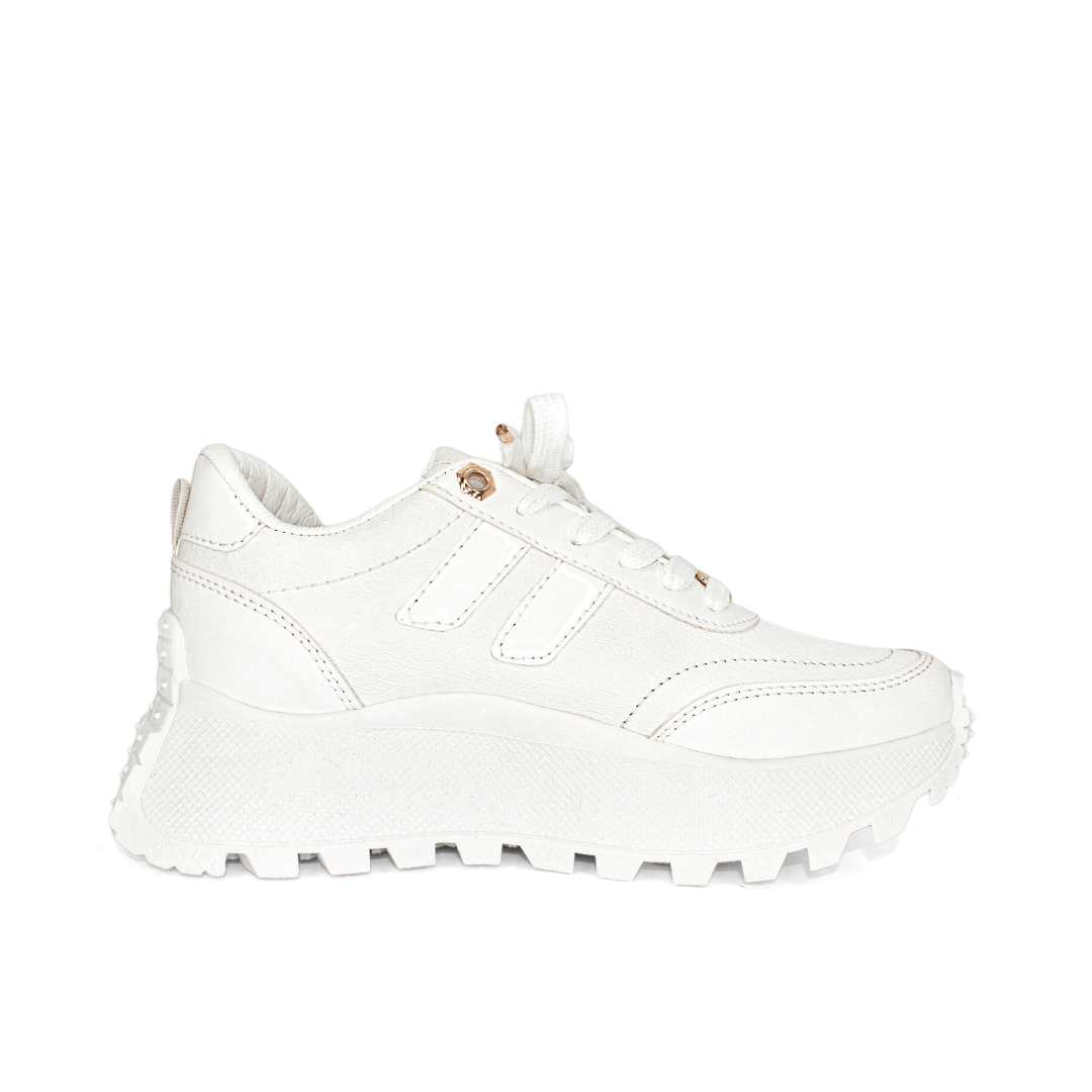 Estilo que marca la diferencia. Plataforma delicada, acabado sintético en tono marfil y líneas minimalistas que se adaptan a outfits casuales o urbanos con total facilidad.