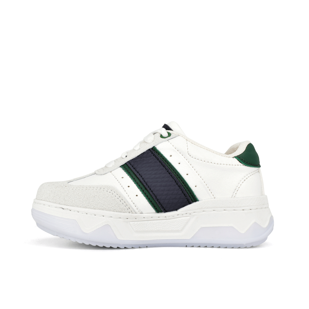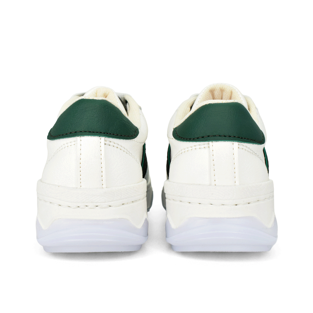 Estilo urbano en tonos blanco, verde y azul que resalta a primera vista. Elaborados con combinación de texturas y detalles laterales que aportan un toque moderno, junto con suela gruesa que marca tendencia. Perfectos para acompañar looks casuales con actitud y personalidad.