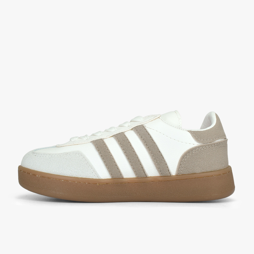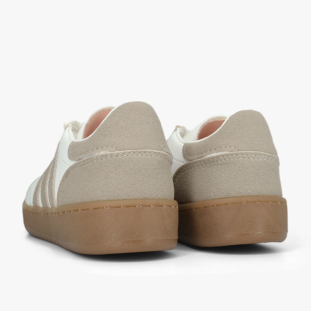 Contraste perfecto entre tonos neutros y suela caramelo que marca tendencia. Silueta clásica con detalles en textura suave que aportan un toque moderno y fácil de combinar para looks casuales con estilo propio.