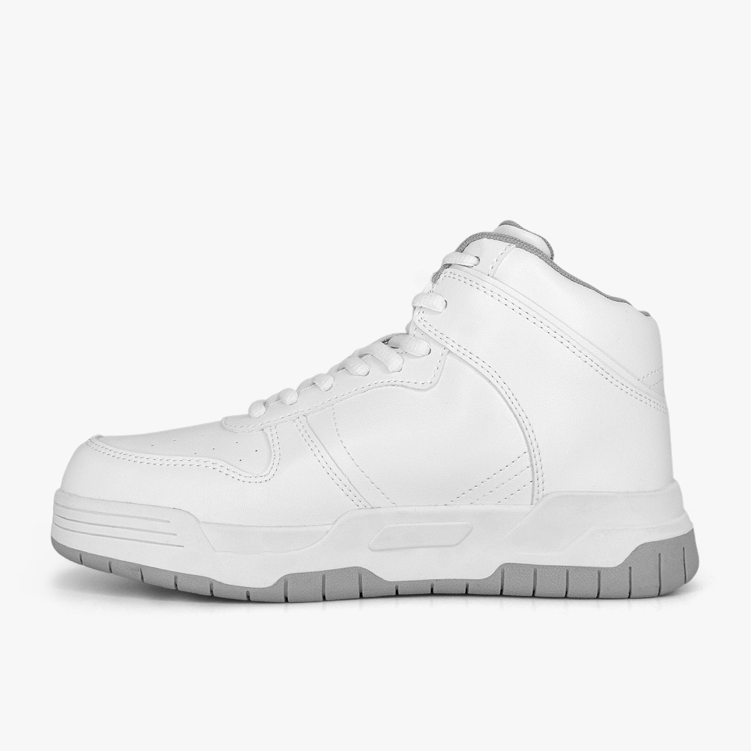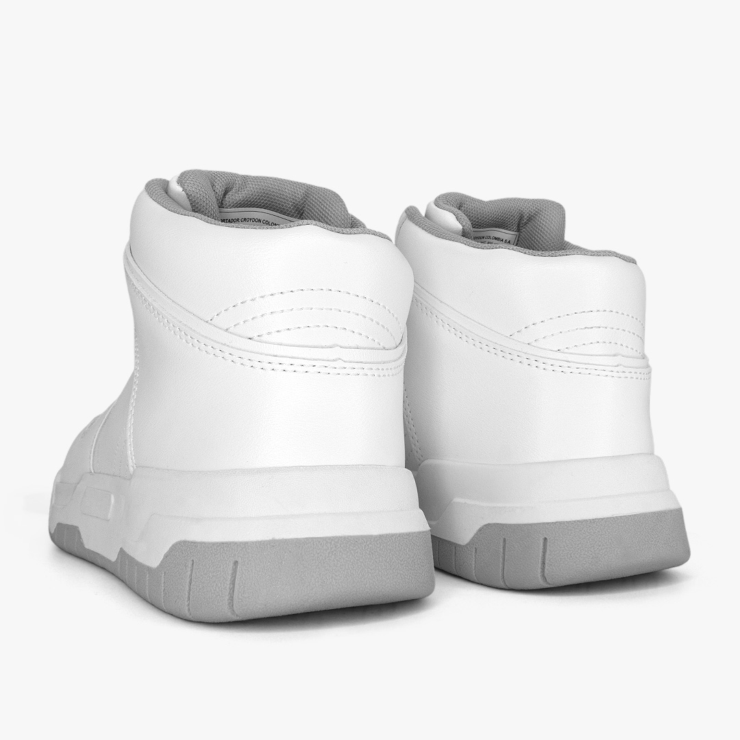 Actitud impecable para cada jornada escolar. Su acabado blanco uniforme y su silueta de corte alto aportan presencia y soporte, mientras la suela resistente brinda tracción y estabilidad en cada paso. Ideal para cumplir con el uniforme sin perder estilo.