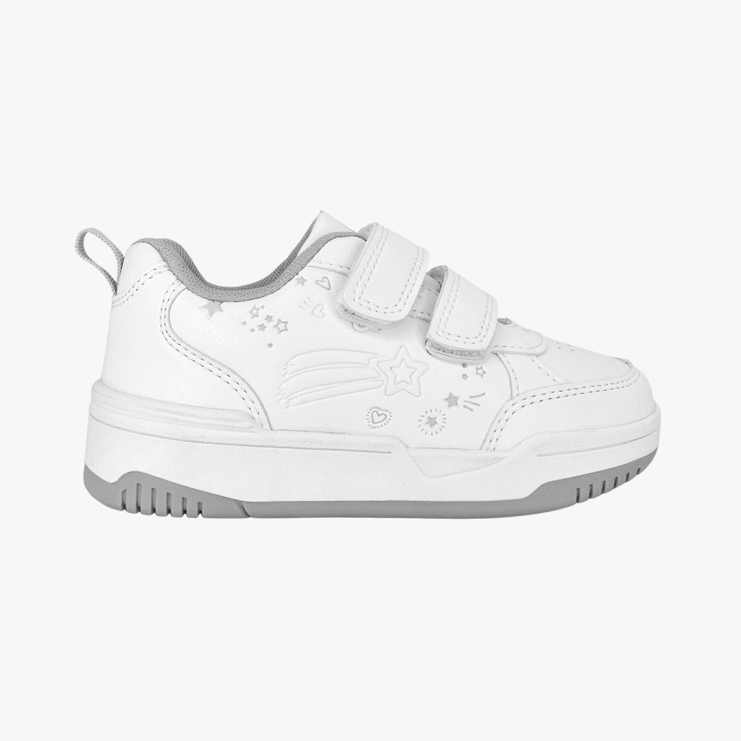 Diseño práctico y delicado que combina con el uniforme escolar, con ajuste en velcro para un calce fácil, detalles sutiles y suela con buen agarre para el uso diario.