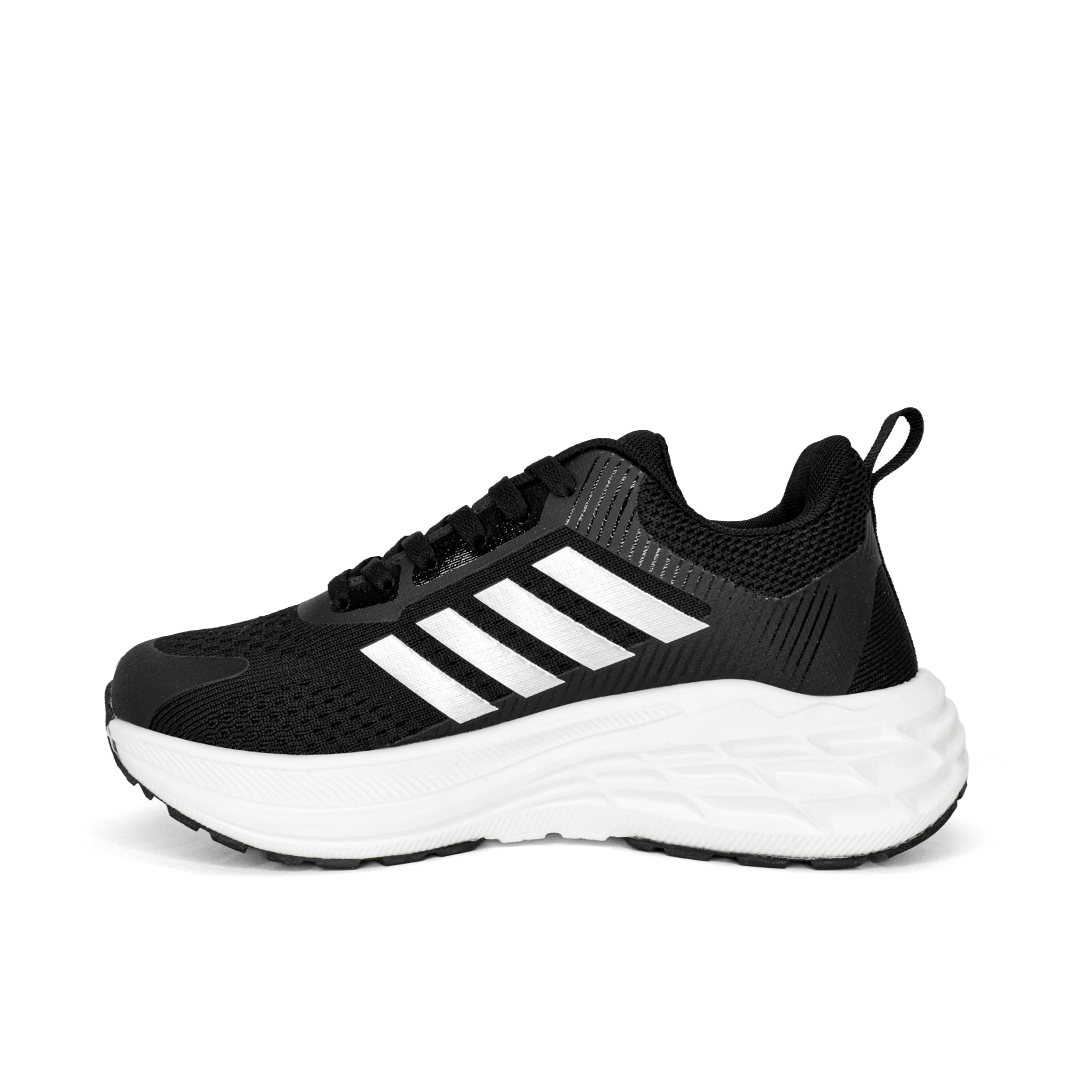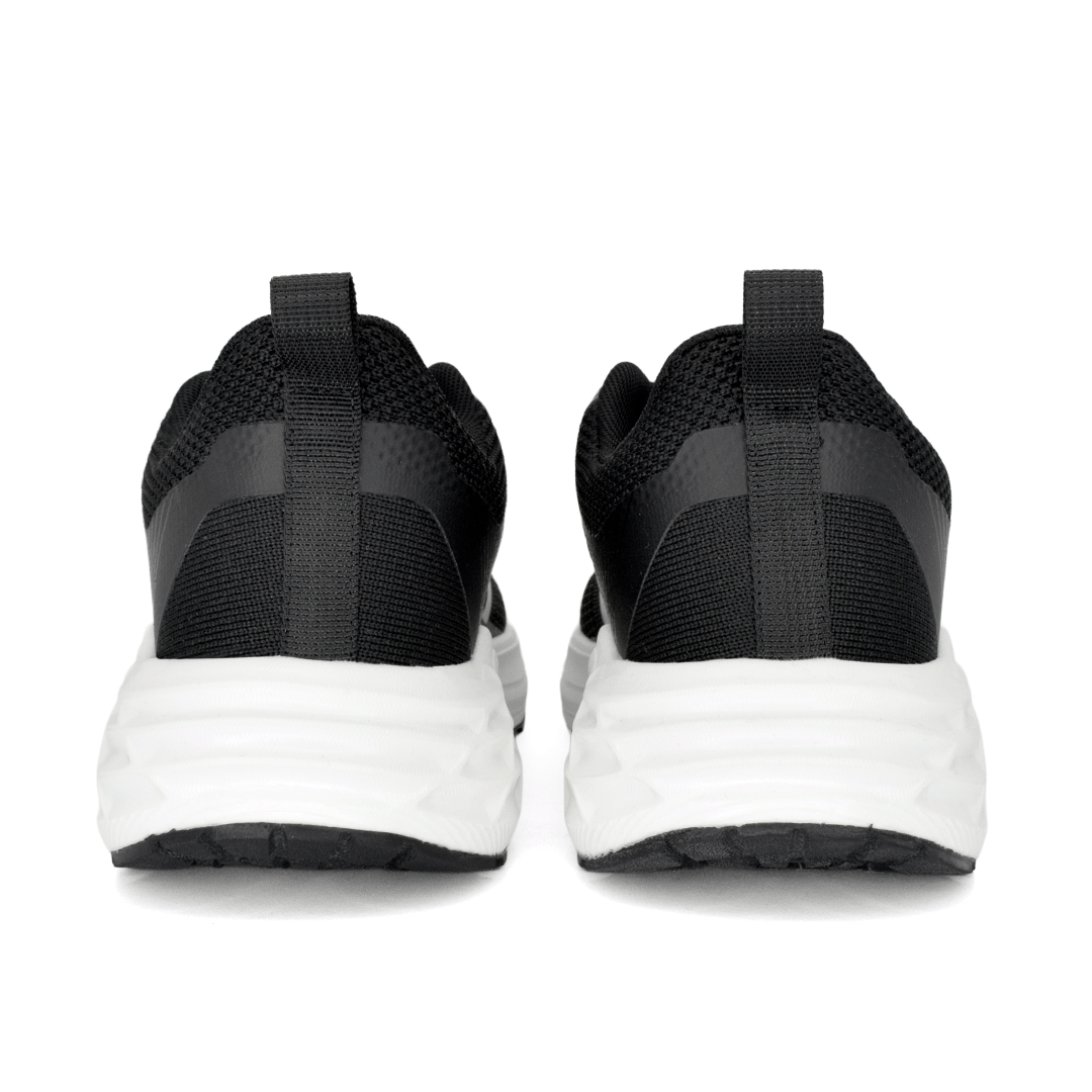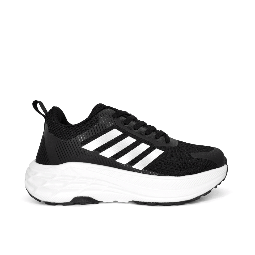 Negro intenso con contraste en blanco que resalta su estilo deportivo. Elaborados en material textil con acabado tipo malla y refuerzos estratégicos, incorporan suela de gran volumen que aporta estabilidad y presencia en cada paso. Una opción versátil para quienes buscan rendimiento y actitud en un solo par.
