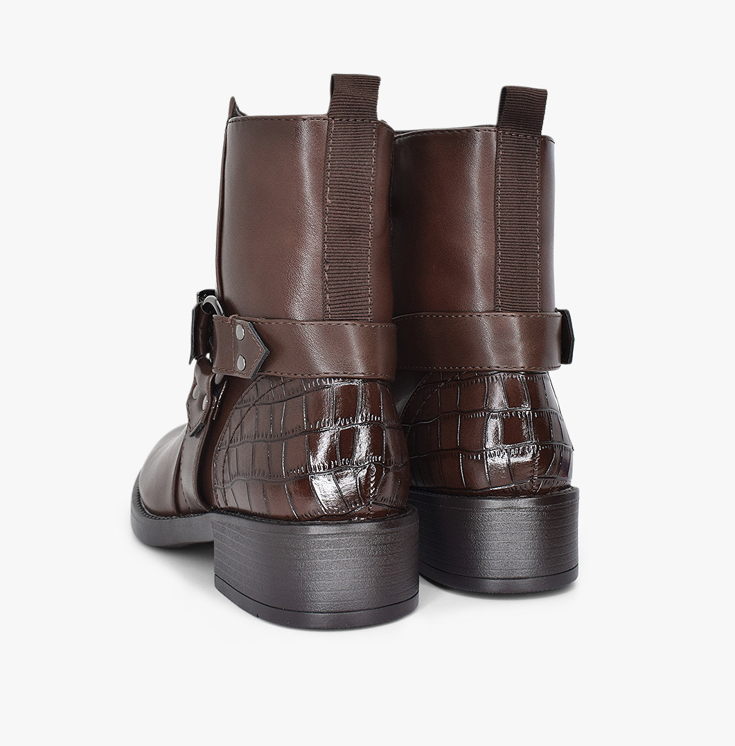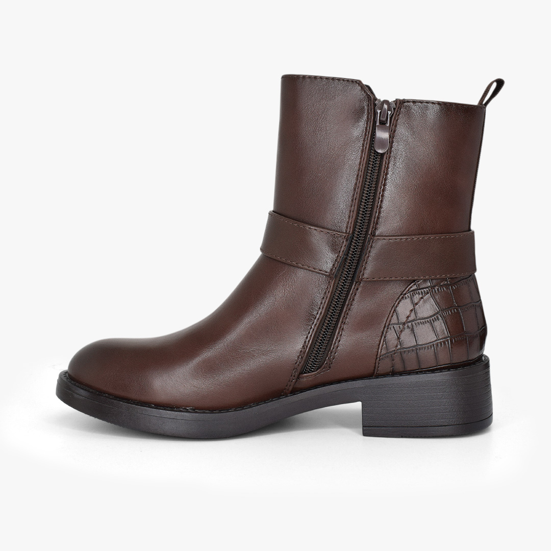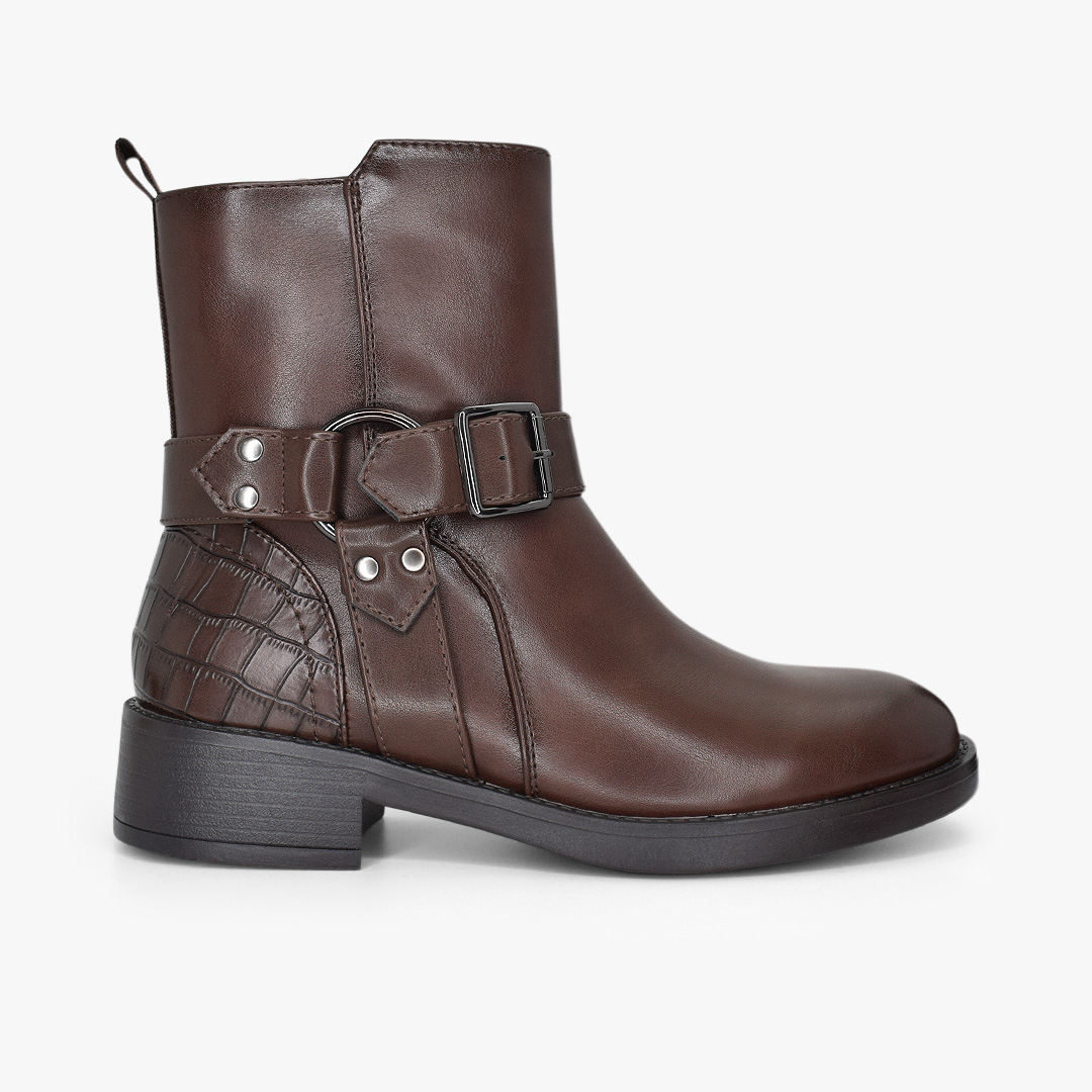 Un toque cálido que eleva cualquier look. El tono café se combina con hebilla metálica y sutiles texturas que aportan carácter y estilo contemporáneo. Una silueta versátil que añade personalidad y se adapta fácilmente a diferentes outfits.